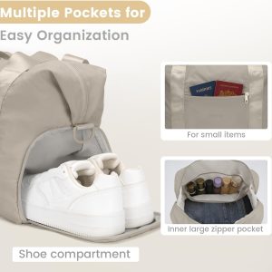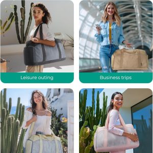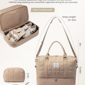 Large Duffle Bag for Travel, Puffer Weekender Bags for Women Travel Tote, Carry on Duffel Bag for Airplanes, 18 Inch Personal Item Bag Gym Bag Women, Coffee
