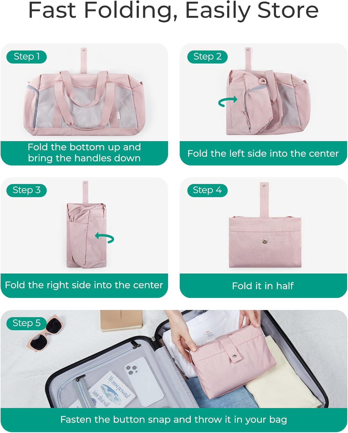 Introducing the ultimate Gym Bag for Women, designed to be your versatile companion for all your fitness and travel needs. This Foldable Duffle Bag is not just a regular bag – it’s a 35L Carry-on Weekender Overnight Bag that seamlessly transitions from the gym to a weekend getaway.