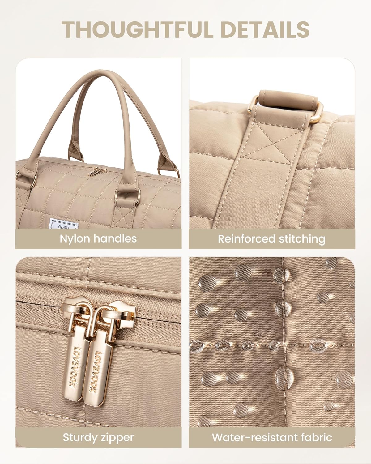 Large Duffle Bag for Travel, Puffer Weekender Bags for Women Travel Tote, Carry on Duffel Bag for Airplanes, 18 Inch Personal Item Bag Gym Bag Women, Coffee